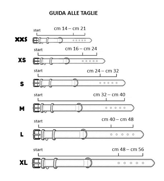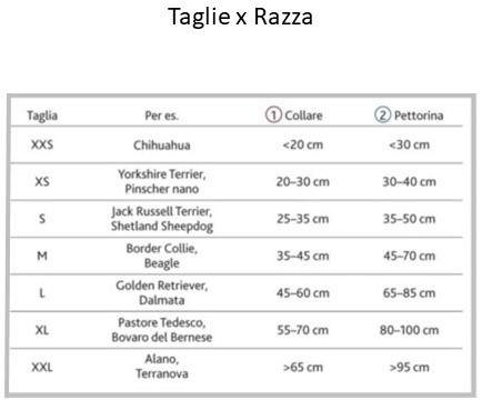 Proprio come noi, nessun cane è lo stesso. Forniamo una linea guida per la scelta della dimensione del collare in base alla razza del cane. La guida dovrebbe aiutarti a scegliere il collare più adatto al tuo cane, ma ti consigliamo di prendere le dovute misure al vostro cane prima di ordinare, per essere sicuri.