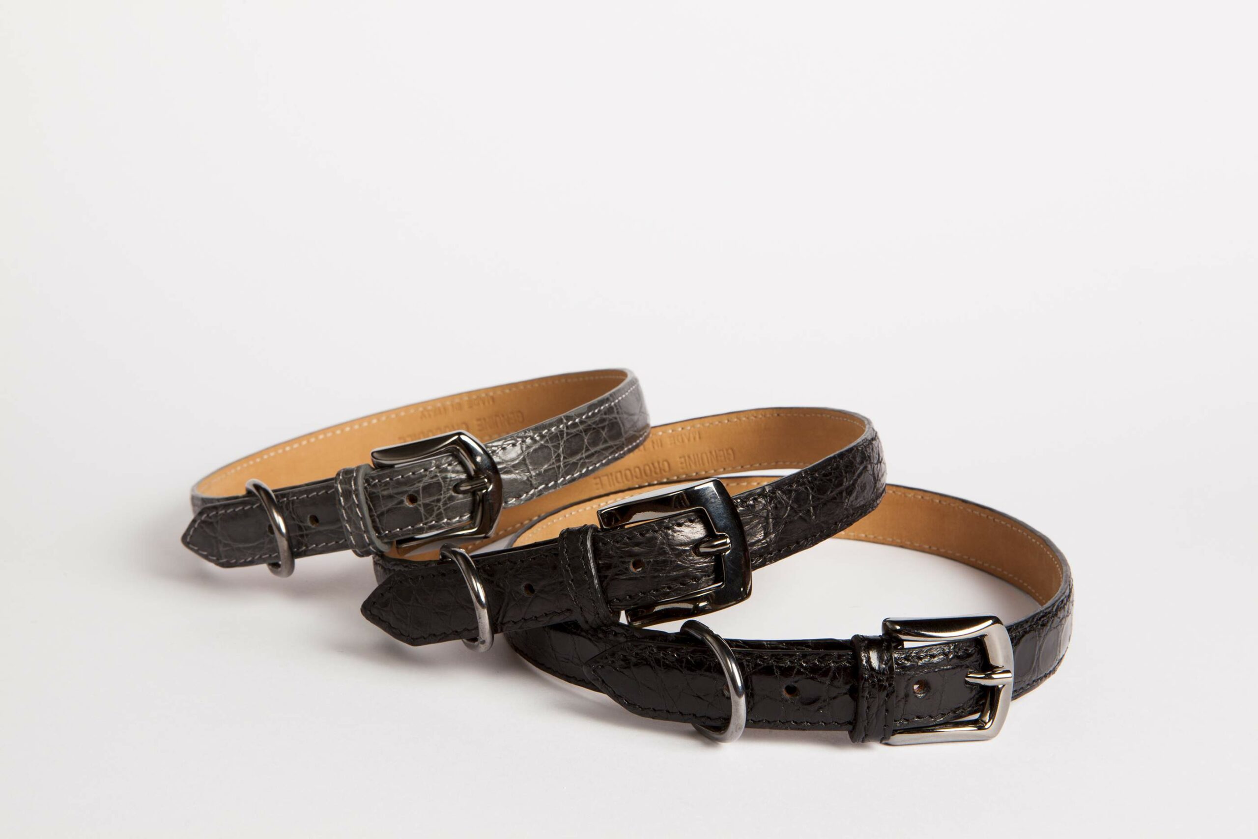 Coccodrillo, Struzzo, Pitone, Razza, Vitello italiano e Vegan.